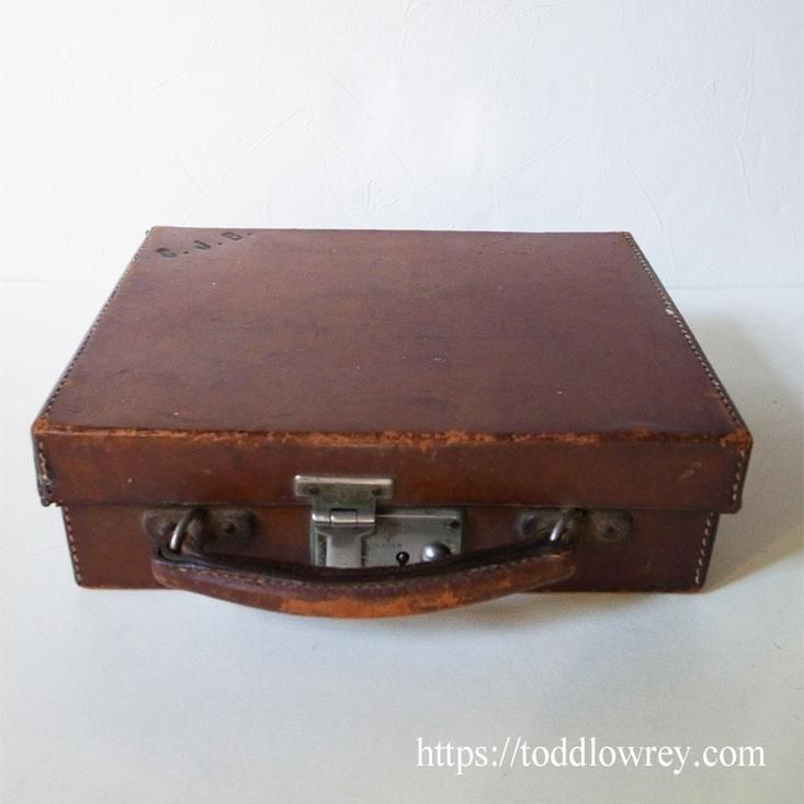 時を経た革の質感に酔う / Antique Leather Small Attache Case with the initials C.J.B.